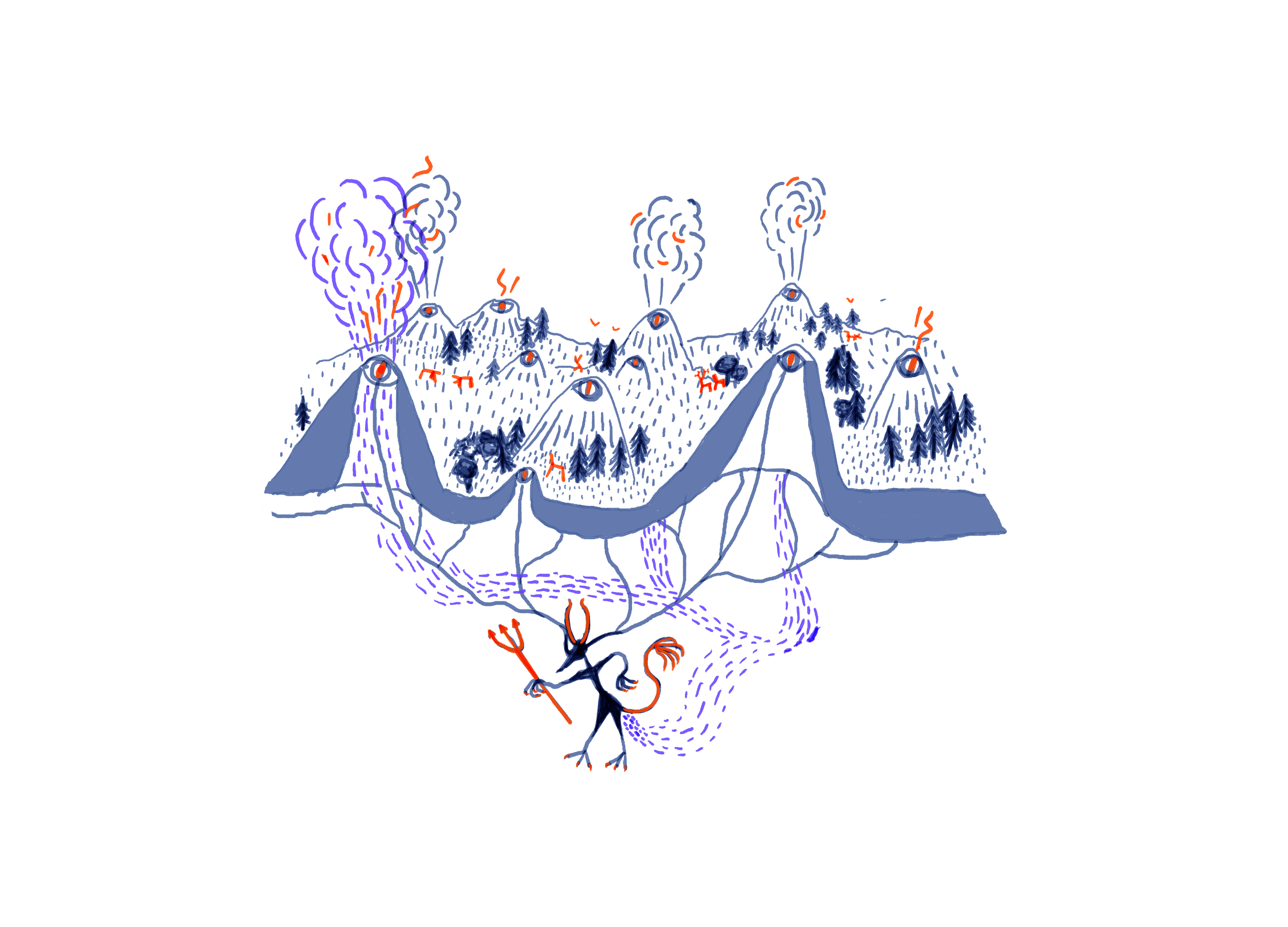 Dans la tradition orale populaire de Haute-Loire, le diable est précédé d’un relent de soufre. Cette odeur que l’on sent prêt des sources volcaniques sort de la terre où habitent les démons. On raconte que Dieu avait accordé à Satan alors enfermé sous terre à la création du monde, le droit de regarder le monde par un volcan. Mais quand le divin père occupé par sa création eut le dos tourné, le malin perça le Velay d’autant de trous de taupes que possible pour avoir l’œil de partout. Le déluge mettra fin à la fête, mais l’œil du diable est il encore dans le suc ? Les saints eux meurent en odeur de sainteté et leurs reliques exposées dans les chapelles alentour embaument le myrte ou le romarin.