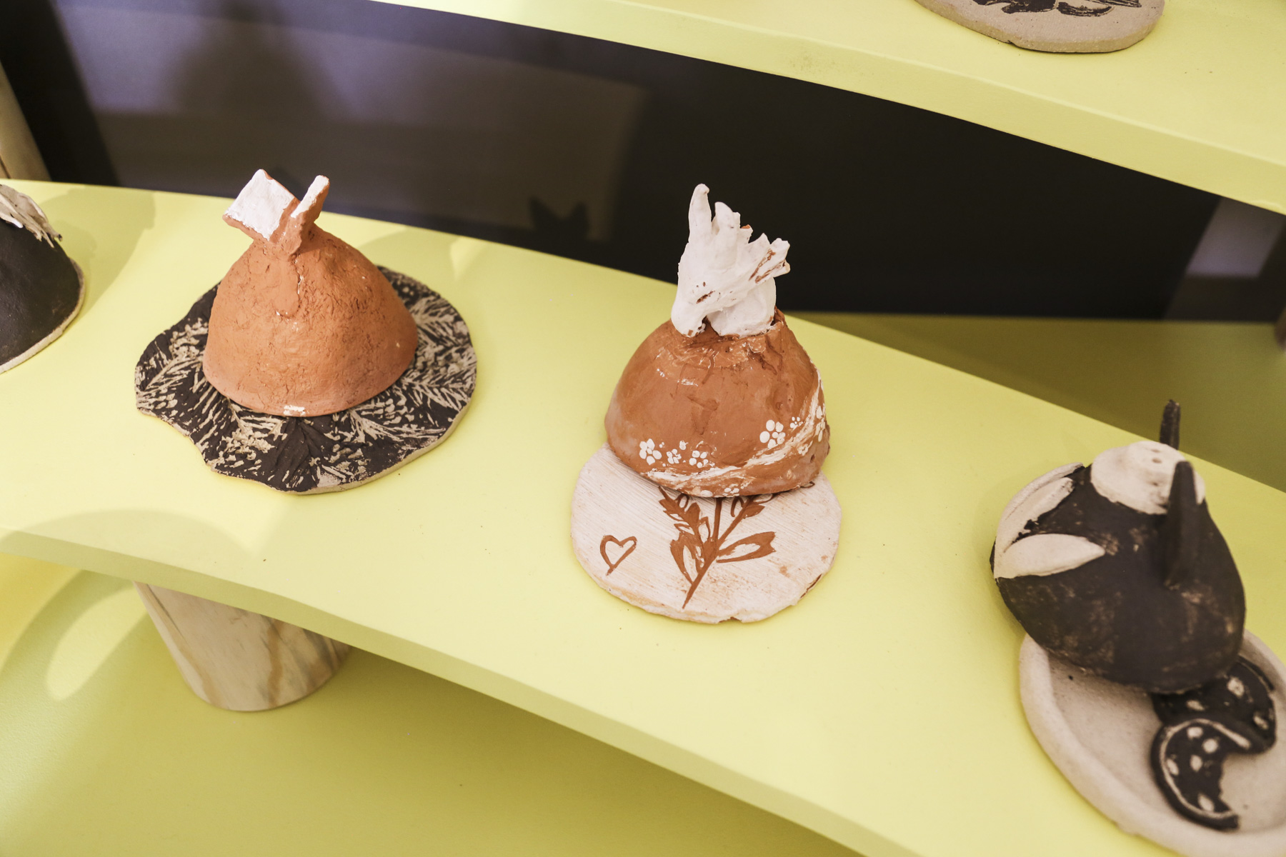 A partir de moules de 3 tailles différentes, les participant.es fabriquent leur propre proposition avec pour seul consigne de cacher dans l'assiette sur laquelle repose leur suc une représentation d'une odeur qui leur semble représenter le pays du Puy en Velay.